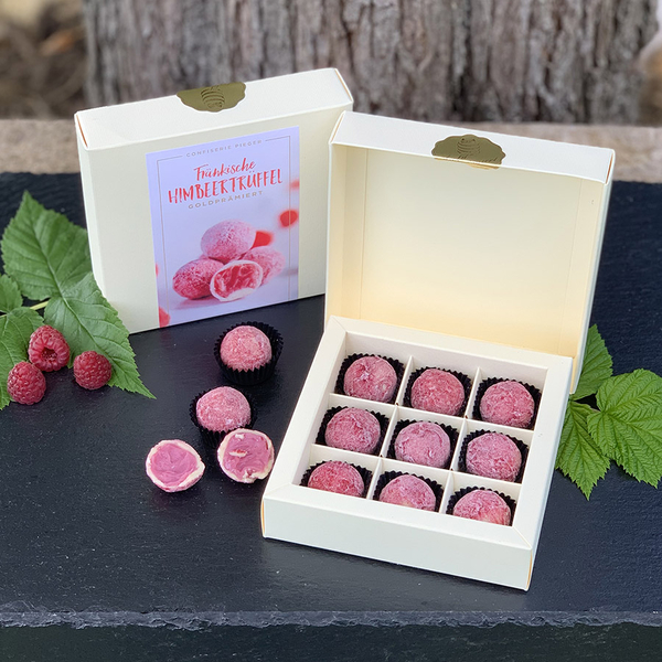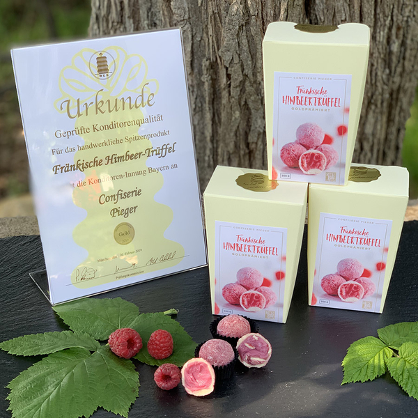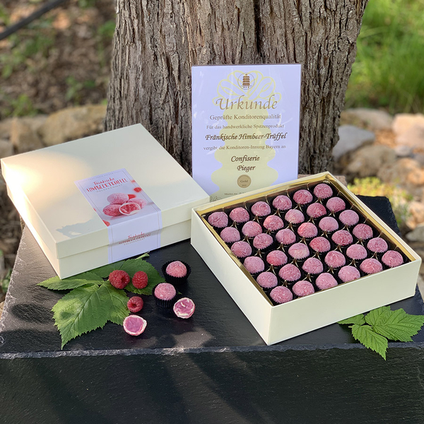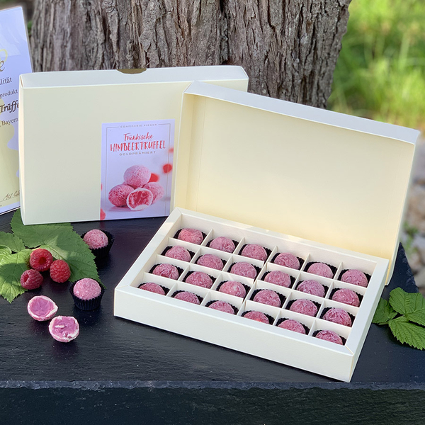 Diese goldprämierte Praline wird aus frisch gepresstem Himbeersaft, frischer BIO-Sahne und edler Kuvertüre sorgfältig von Hand hergestellt. Fruchtig und leicht mit knackigem Bruch ist es die unwiderstehliche Sommer-Praline!